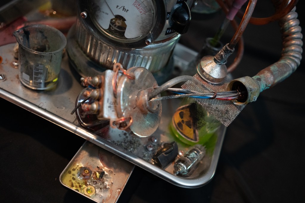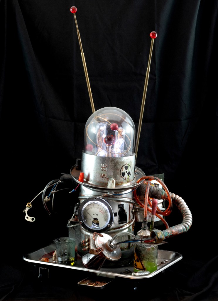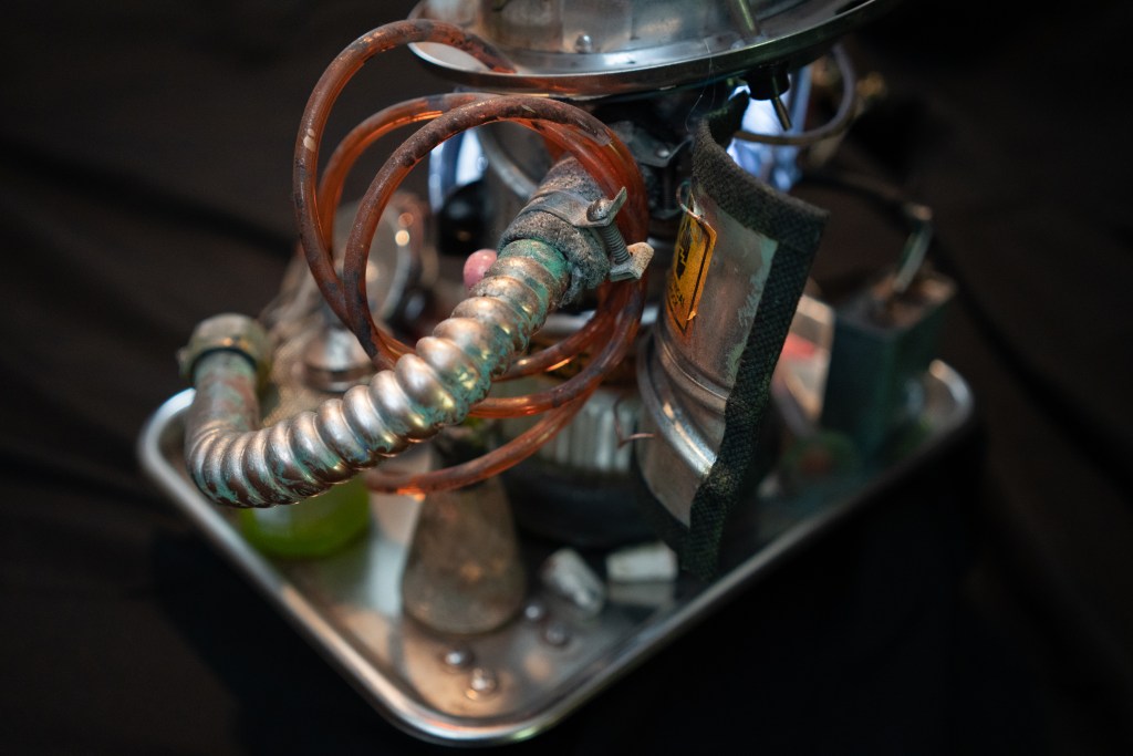 2021. 22″h x 16″w. Metal, plastic, tin, LED, resin, wire, stainless steel.