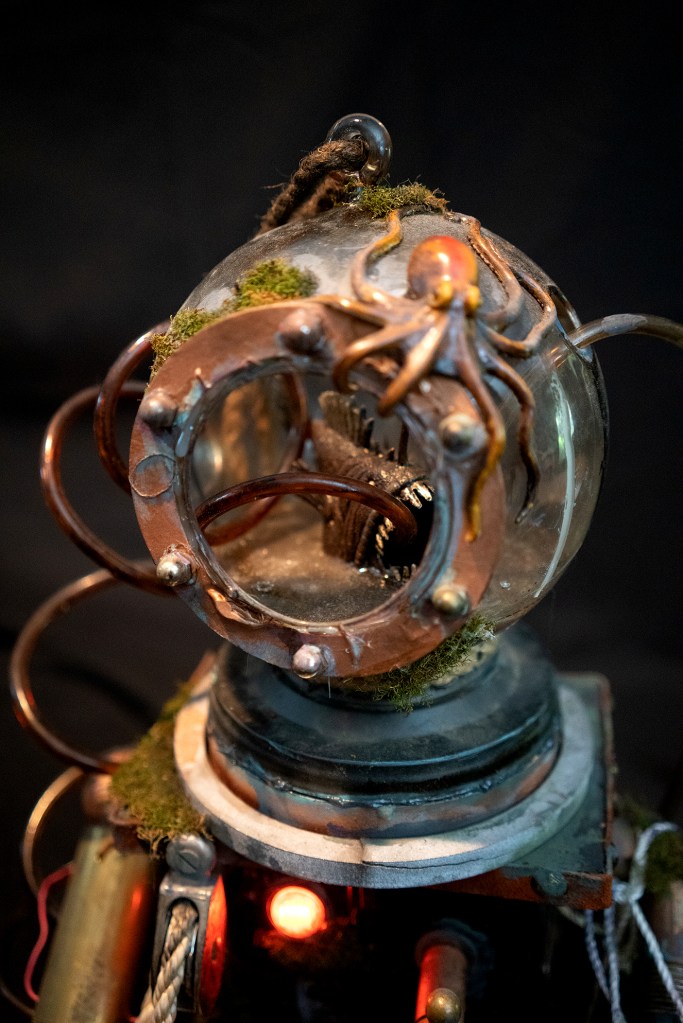 Imaginary backstory: N1K1 is a WWI-era automaton designed to repair the exterior of damaged submarines while underwater. It was discovered on a shipwreck during a 2011 salvage mission in the Baltic Sea.