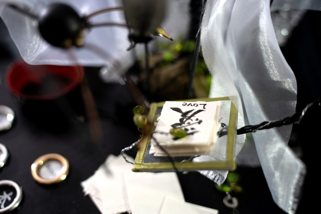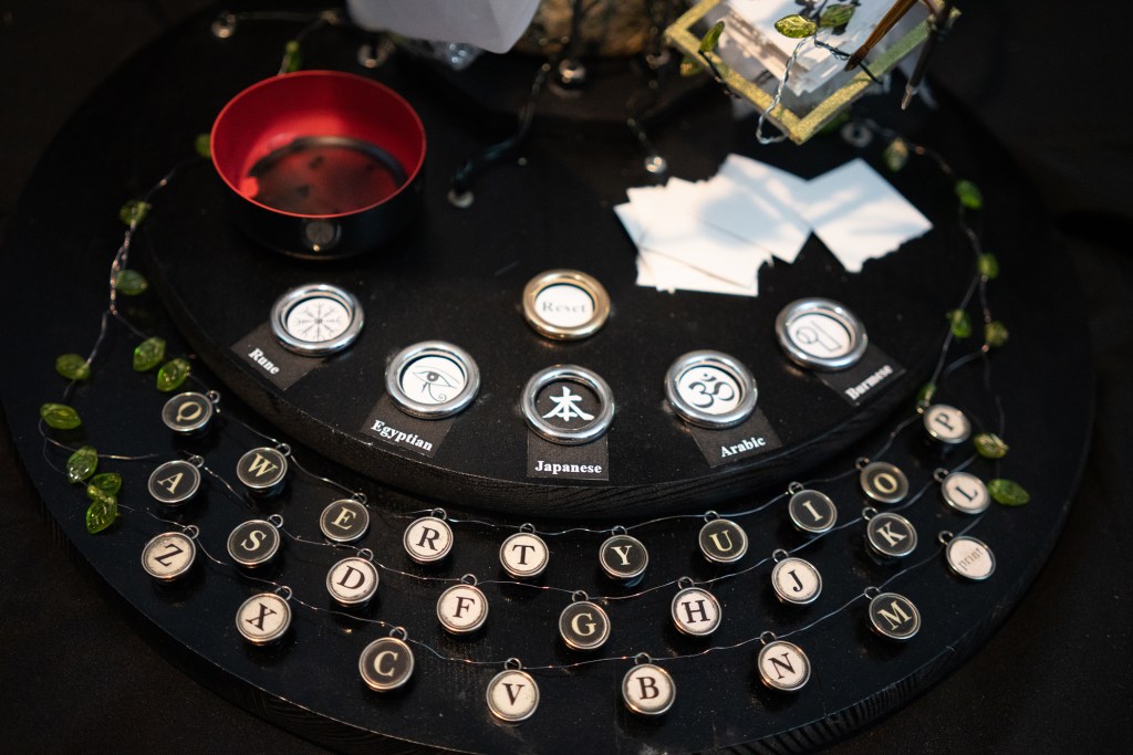 Imaginary backstory: The Scribe was devised to translate English words typed into the keyboard into 5 different languages: Japanese, Egyptian, Arabic, Burmese and ancient runes. It then writes the translations on small pieces of paper.